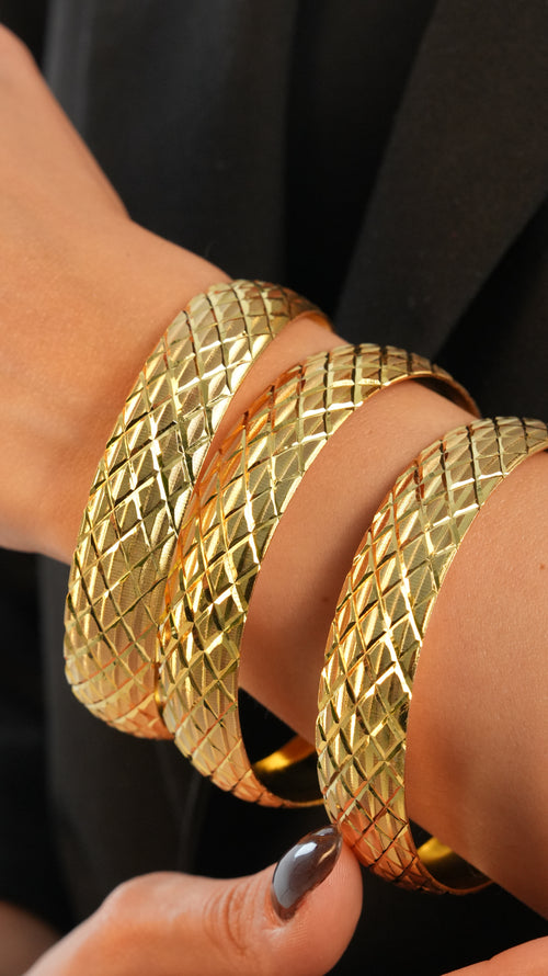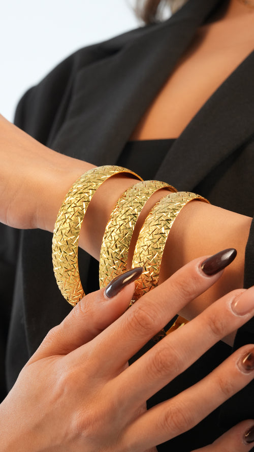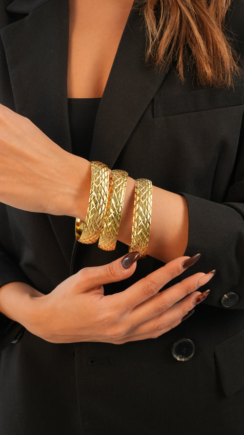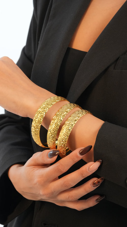 22 Ayar Altın Görünümlü Zigzag Ajda Model Bilezik – 3'lü Set